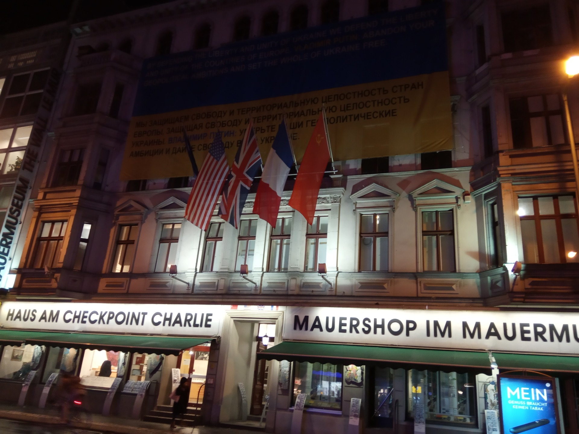 Visitámos o local chamado Checkpoint Charlie que se tornou um símbolo da Guerra Fria, representativo da divisão da cidade de Berlim. É um marco que não nos permite esquecer a necessidade da tolerância.